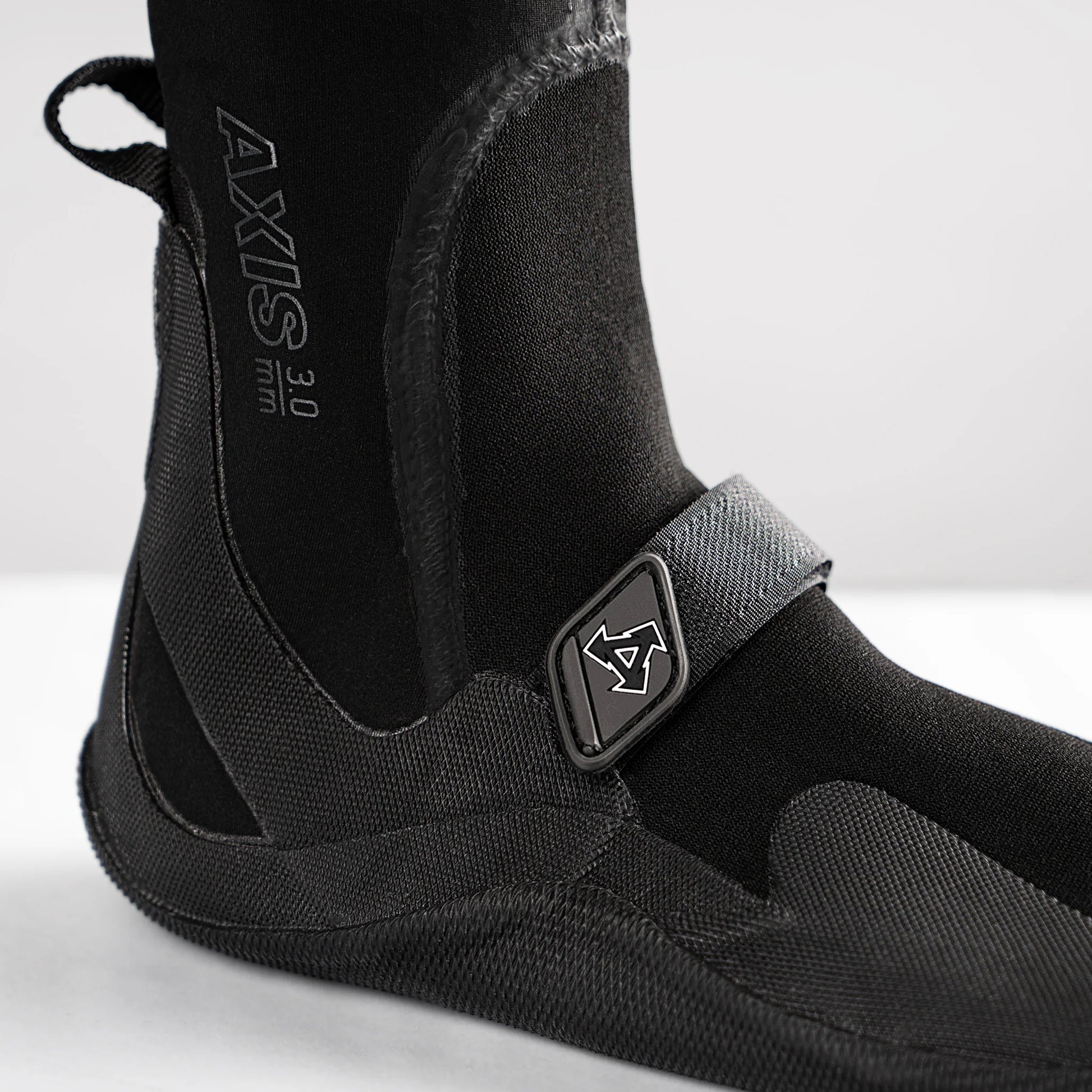 Ideal Comfort, Durability, And Warmth. The Axis boot has a strong outer seam and is glued and blindstiched for added durability. They feature an adjustable hook-and-loop strap for a great comfortable and a snug fit. With a pressure-bonded back ankle pull for easy entry on those cold mornings.